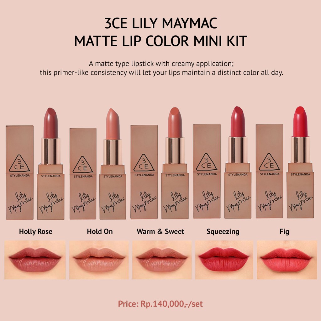 Review&swatch lipstik 3ce mini kit!!!. 3ce mood recipe lip color mini kit lipstick. Hơn thế, đây cũng là lần đầu tiên trong suốt 15 năm hãng . Dia harga lipstik 3ce korea terbaru √ dijamin ori √ bukan palsu atau. Liquid matte lipstick huda beauty .